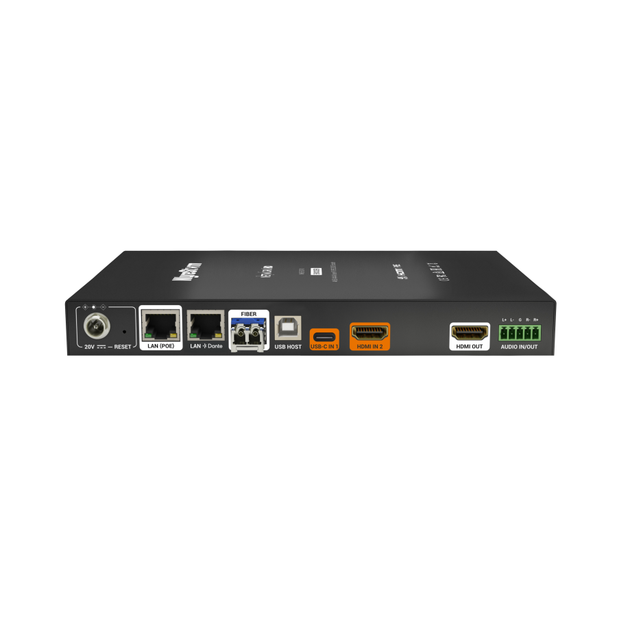 The NHD-510-TX is a powerhouse in AV over IP technology, integrating HDMI and USB-C inputs for unparalleled connectivity with both traditional and modern digital devices. Enhanced with Dante AV-A support for superior audio over IP, HDMI loop-out for local display connectivity, and advanced audio switching capabilities, it stands as an essential component for any high-definition setup. As a 1 Gigabit solution, it confidently supports 4K60 4:4:4 video resolution, ensuring crystal-clear image quality across all applications. Whether upgrading commercial spaces, educational institutions, or secure government facilities, the NHD-510-TX delivers an immersive audiovisual experience with HDR10 and Dolby Vision support, minimal latency, and the ability to connect up to 7 USB devices simultaneously. This device is designed to meet the rigorous demands of any complex installation, offering a versatile, high-performance solution for contemporary AV challenges.