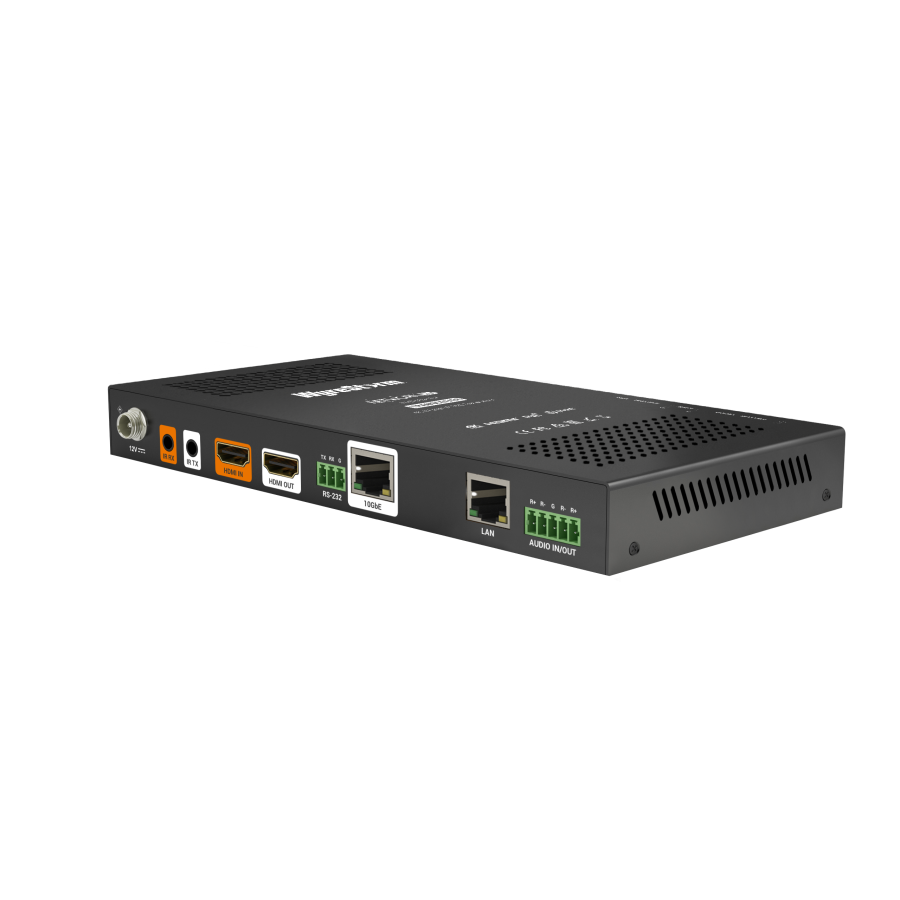 The NHD-600-TRX is a transceiver capable of lossless latency-free 4K60 over a 10GbE network. The TRX allows you to transmit and receive A/V simultaneous through a single device or be programmed to act as a dedicated TX or RX. 3x USB HID ports allow extension for keyboard and mouse applications such as a corporate meeting room or an operating center. A cutting-edge architecture provides an efficient, small footprint and support for PoE+.