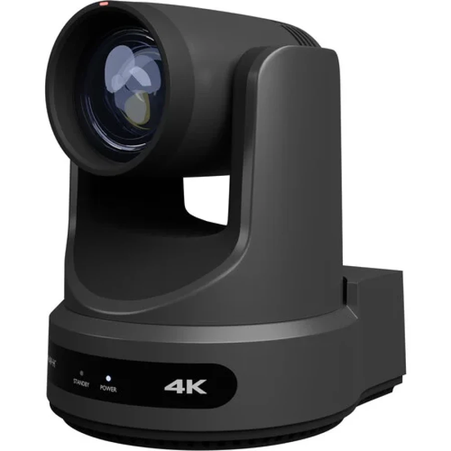 PTZ Camera, featuring 12X Optical Zoom, 4K Resolution at 60fps. Supports simultaneous IP Video (DANTE AV-H, SRT, RTMPS, RTSP), USB2.0 and 3G-SDI or HDMI2.0 as outputs with Auto-Tracking capabilities. DC or PoE+ Power. Seamless Integration with Dante Controller. 3.5mm Audio In/Out (Dante Audio Over-IP) | Grey